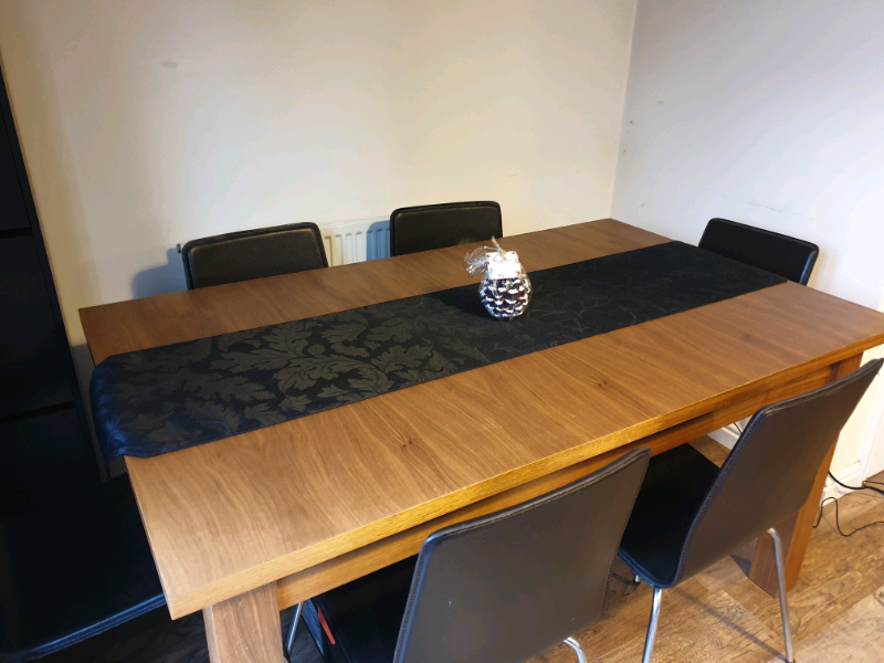 Wooden table and 6 chairs | in Poole, Dorset | Gumtree from i.ebayimg.com The shipping only took 2 days. Shop this collection (17) $ 299 00. 4.4 out of 5 stars 47. Table and 6 chairs 86 5/8x39 3/8 $ 1,643. 6 piece dining table set, wood dining dinette table and 4 chairs with 1 bench with cushion, rustic style kitchen table set for 6 persons, gray 4.1 out of 5 stars 27 $459.99 $ 459. Some popular features for dining chairs are unfinished wood, solid wood and tufted. Includes dining table and 6 upholstered chairs. Wood is used discreetly with herman thus it give it a pleasant lightness.