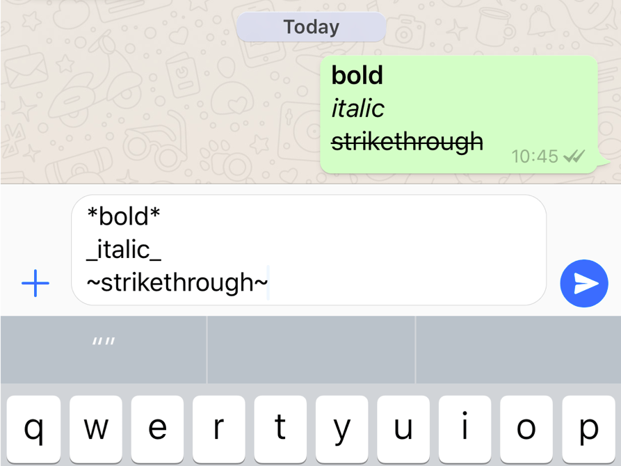 How To Bold In Whatsapp : How To Type Bold Italics And Strikethrough In Whatsapp On Iphone : To type in bold letters, insert an asterisk (star *) at the beginning of a word or sentence and add an asterisk at the end.. Tap more to choose strikethrough or . If you'd like your text to appear in bold, simply add an asterix (also known as star) "*" before and after your text . To type in bold letters, insert an asterisk (star *) at the beginning of a word or sentence and add an asterisk at the end. While whatsapp lets you send text, images, gifs, videos, . Tap more to choose strikethrough or monospace.